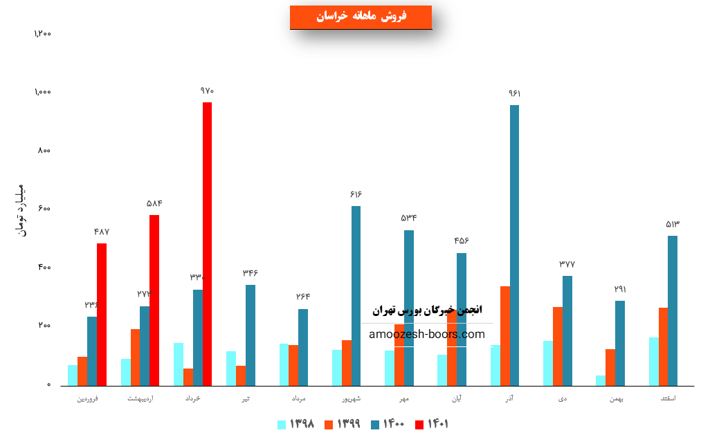 فروش نماد خراسان: 5273 میلیارد تومان که نسبت به دوره مشابه گذشته 138% افزایش یافته است.