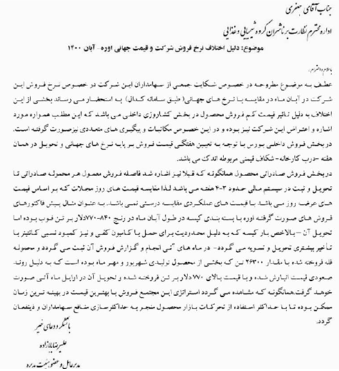 5- در خصوص افزایش بهای تمام شده، ۱ : ماده اولیه اصلی تولید این شرکت،گاز خوراک میباشد كه با نرخ ۹ سنت برای هر m۳ گاز و نرخ تسعیر ۲۳۰,۰۰۰ ریال برای کل سال در نظر گرفته و محاسبه شده است. لازم به ذکر است ضریب محاسبه نرخ گاز در ۶ ماهه اول ۰/۹ و برای ۶ ماهه دوم ۱/۱ میباشد. ۲:.نرخ سوخت از ابتداي سال۱۴۰۰ معادل ۳۰ درصد نرخ خوراك ميباشد.