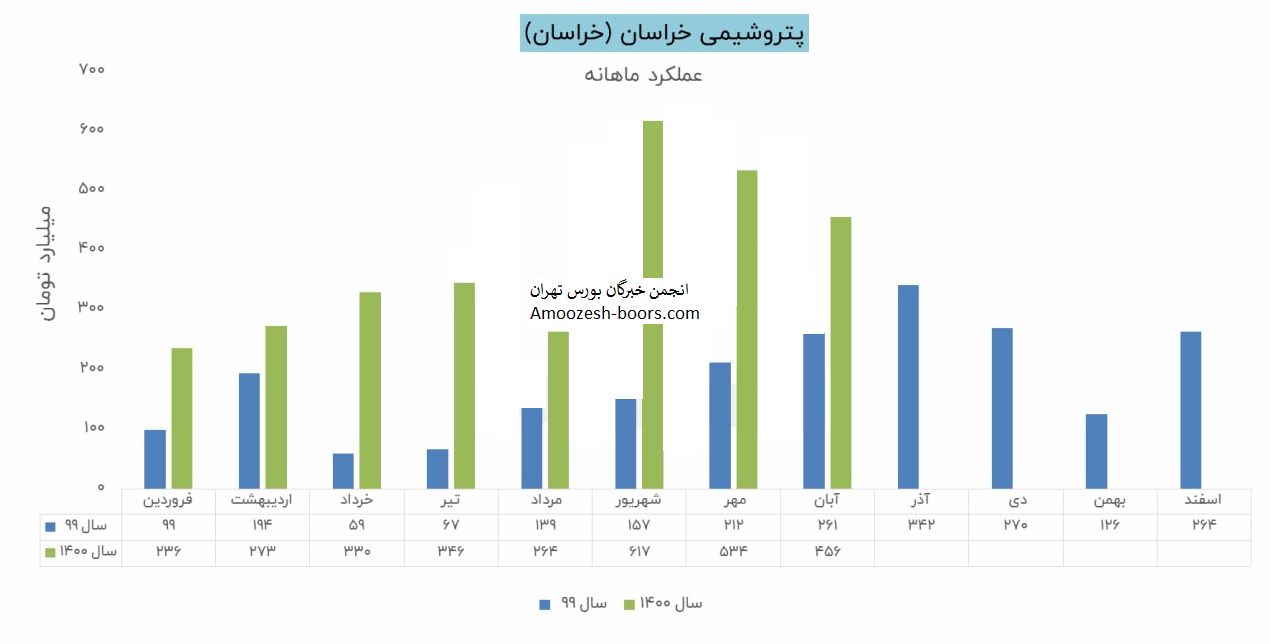 در ماه جاری انبار محصولات شرکت پتروشیمی خراسان سبب شده است مبلغ فروش چشمگیر نباشد درآمد شرکت در این دوره نسبت به ماه قبل 15% کاهش و نسبت به میانگین ماه های قبل 23% افزایش داشته است.