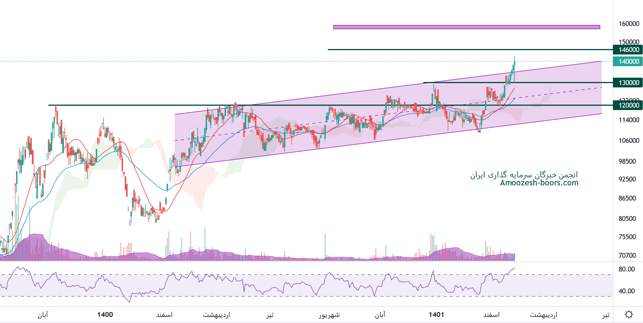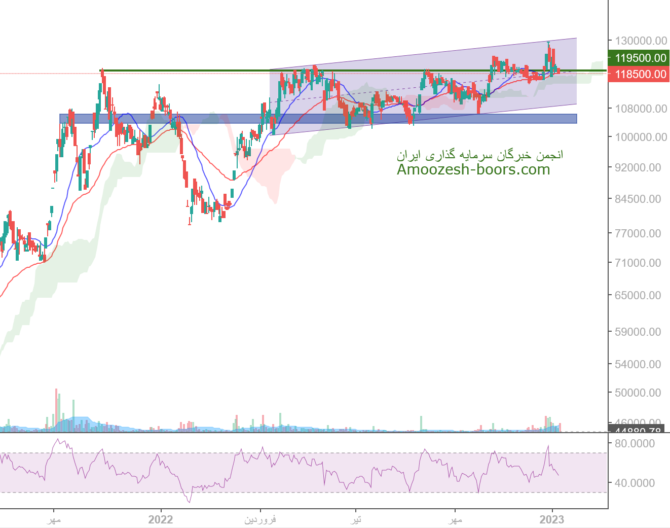 نماد خراسان در محدوده میدلاین کانال در حال نوسان میباشد، در صورت تثبیت قیمت سهم خراسان در این محدوده، حرکت سهم تا 130000 ریال دور از ذهن نمیباشد، همچنین در صورت از دست رفتن این محدوده حمایتی، اصلاح قیمت تا 110000 ریال محتمل میباشد، در صورت تثبیت قیمت در این محدوده ورود پله ای به این سهم دور از ذهن نخواهد بود.