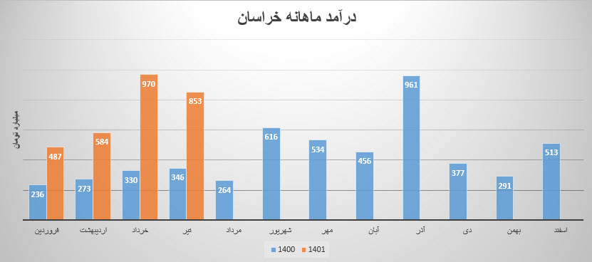 نماد خراسان در دوره 4 ماهه از سال 1401 موفق شده 54 درصد از بودجه سال 1400 را پوشش دهد.