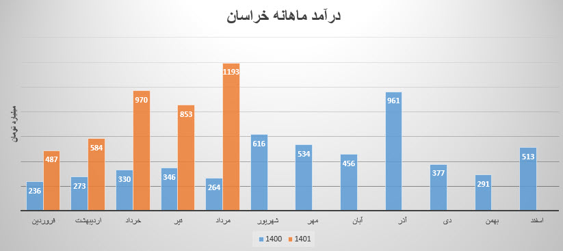 درآمد سهم خراسان در این دوره نسبت به ماه قبل 45% افزایش و نسبت به میانگین ماه های قبل 67% افزایش داشته است.