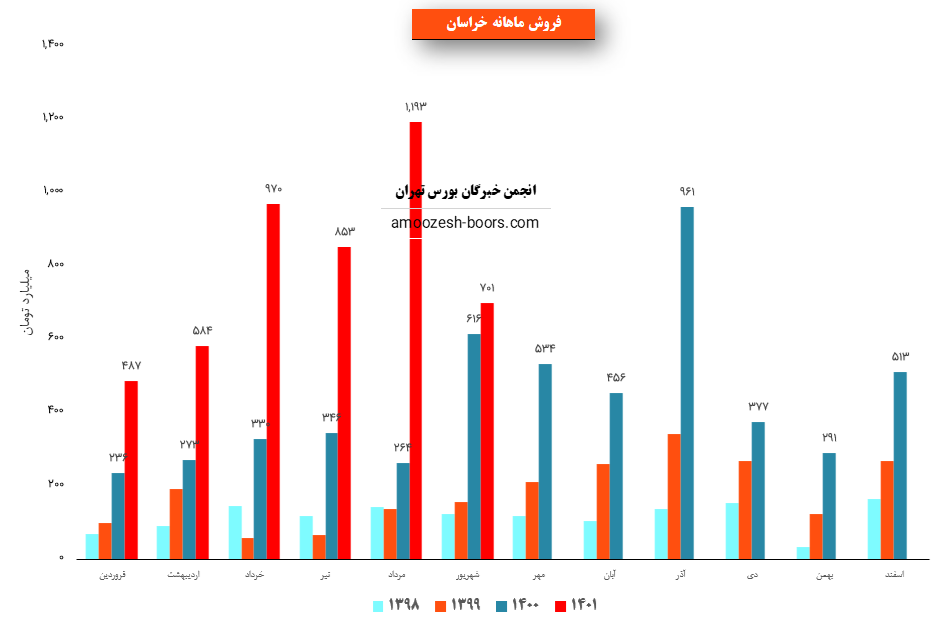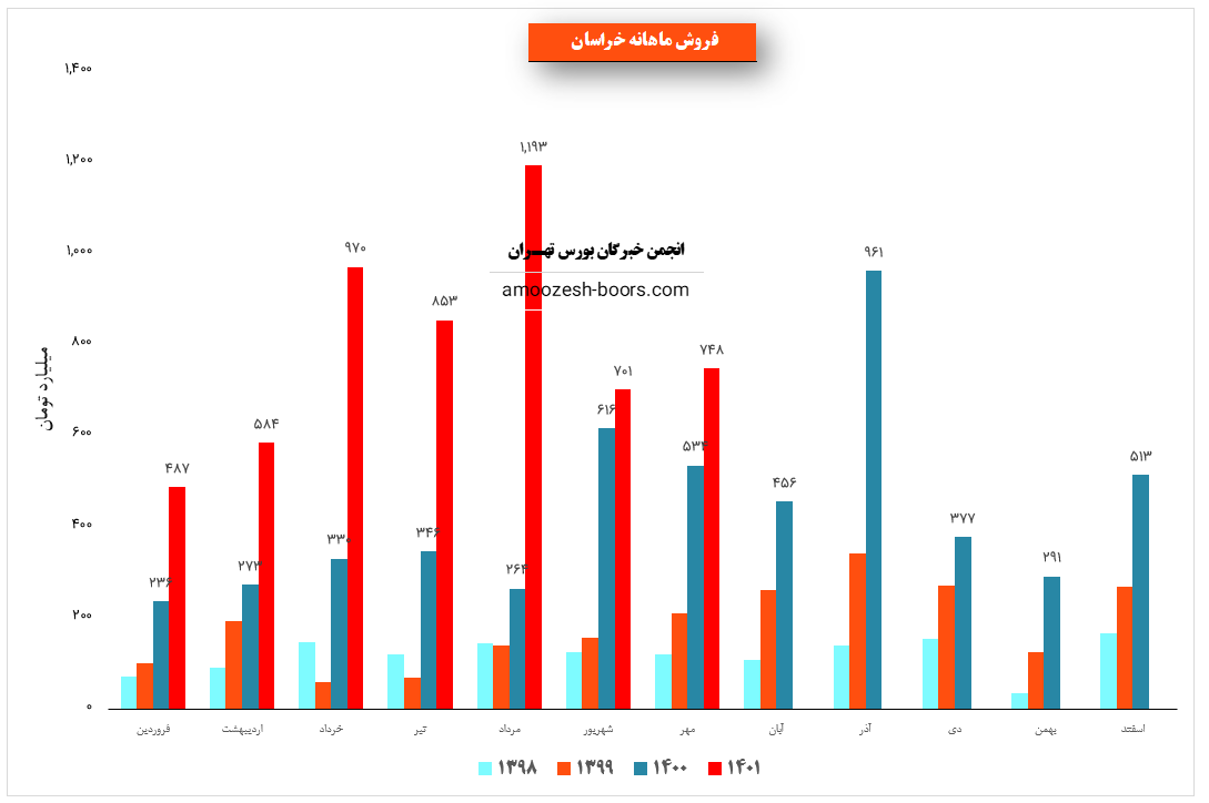 فروش نماد خراسان: 4620 میلیارد تومان که نسبت به دوره مشابه گذشته 124% افزایش یافته است.