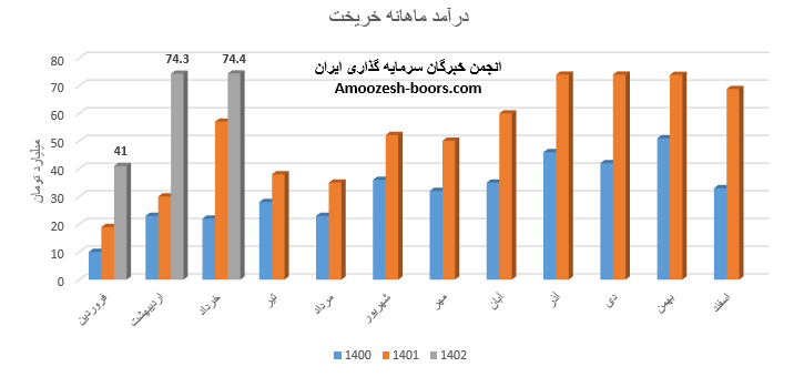 فروش نماد خریخت طی عملکرد ماهانه 60 میلیارد تومان گزارش شده است که در مقایسه با ماه گذشته 14% و نسبت به متوسط ماهانه 12% افت داشته است.