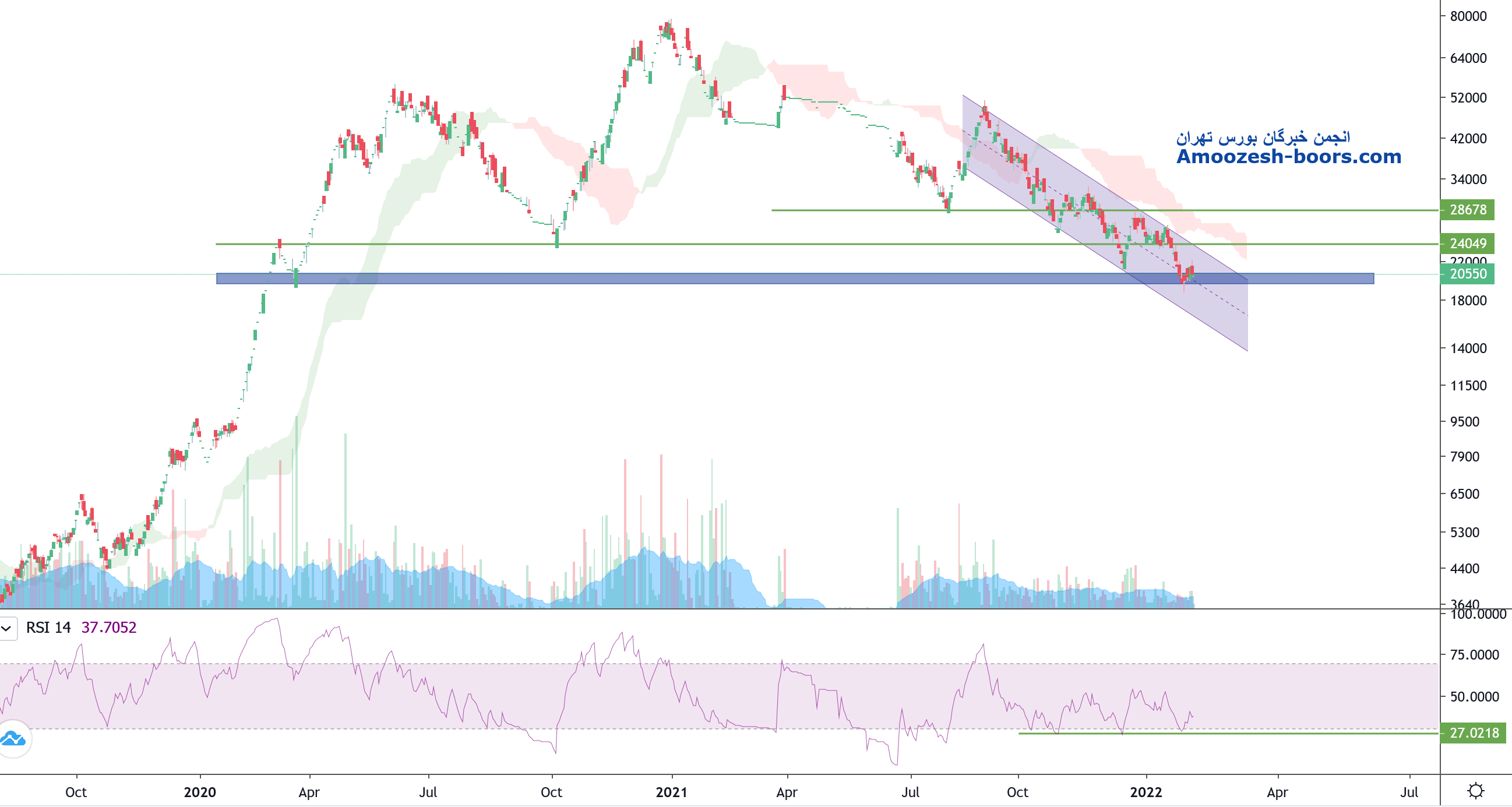 قیمت پس از خروج از کانال اصلاحی نزولی خود و برخورد به مقاومت محدوده ۲۱۰۰ تومان در حال پولبک به کانال شکسته شده میباشد که در صورت تایید پولبک و شکست محدوده مقاومتی ۲۱۰۰ تومان می‌تواند رشد خود را تا محدوده مقاومتی ۲۷۰۰ تومان نیز ادامه دهد اما در صورت عدم تایید پولبک و عدم وجود تقاضا قیمت اصلاح بیشتری کرده و مجدداً می تواند کف ۱۷۰۰ تومان را تست کند.