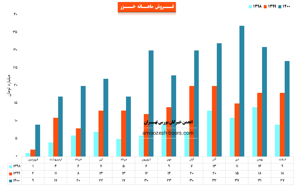 خزر در خرداد به درآمد 401 میلیارد ریال رسید (94%) درصد آن مربوط به فروش داخلی و (6%) درصد آن مربوط به کل صادرات شرکت است. درآمد شرکت در این دوره نسبت به ماه قبل 12% افزایش و نسبت به میانگین ماه های قبل 43% افزایش داشته است. شرکت نسبت به دوره 1 ماهه مشابه سال قبل 99% افزایش درآمد داشته است.