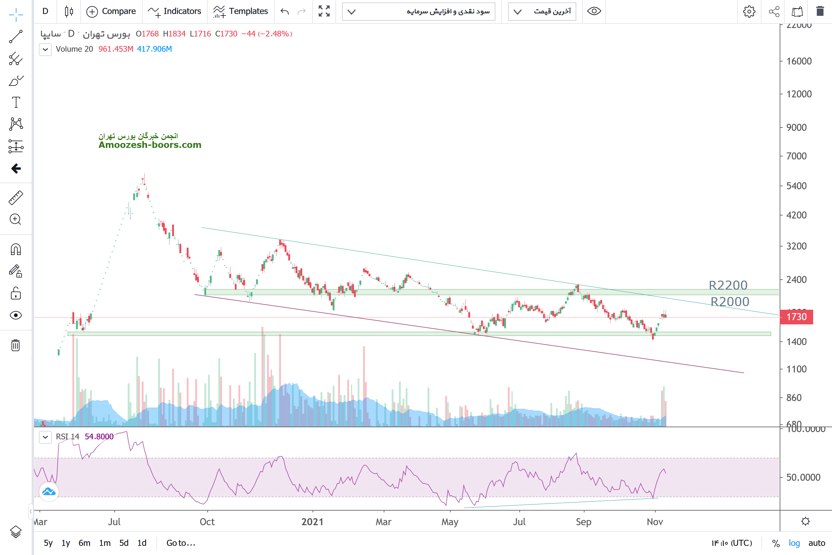 در صورت تثبیت قیمت درین کف حمایتی مقاومت های 1800و2100 بر سر راه سهم قرار داشته و پیشنهاد به ورود پله ای داده میشود و در صورت شکست این سطح حد ضرر فعال میگردد زیرا شکست این کف باعث ایجاد ترس در سهامداران شده و شتاب روند نزولی را افزایش میدهد هرچند تصمیم هیجانی و نه بر اساس ارزش سهم باشد