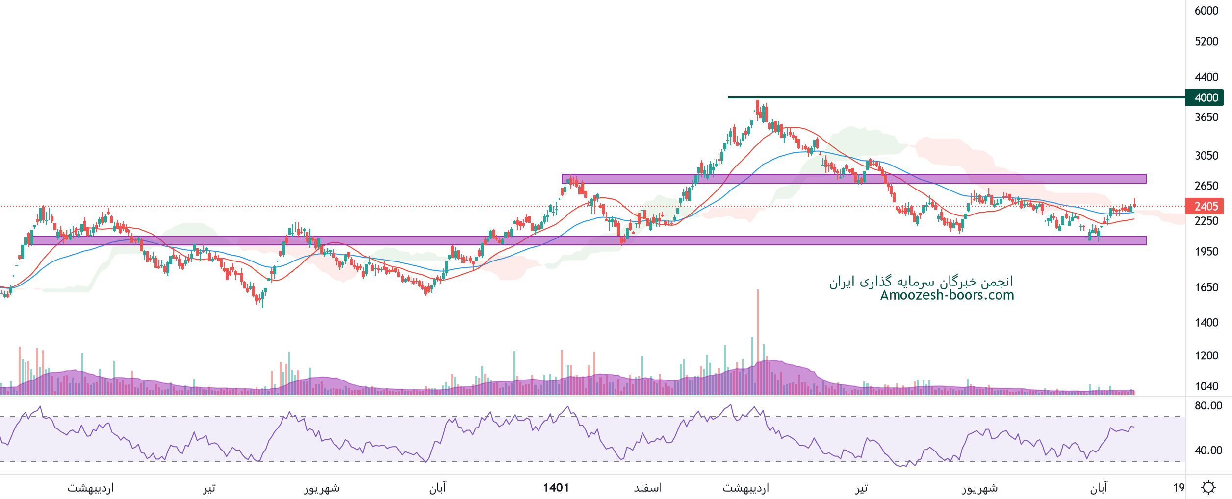 در بررسی نمودار تکنیکال نماد خساپا، قیمت سهم از کف حمایتی خود حدود 20% رشد داشته و در حال حاضر محدوده مقاومتی 2700 ریال را دارا میباشد، در صورت ورود قیمت به فاز اصلاحی، اولین محدوده حمایتی سهم خساپا محدوده 2000 ریال ارزیابی خواهد شد.