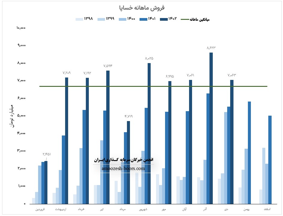 فروش ماهانه خساپا در مقایسه با متوسط ماهانه 12% و نسبت به آبان ماه سال گذشته 33% رشد را نشان میدهد.