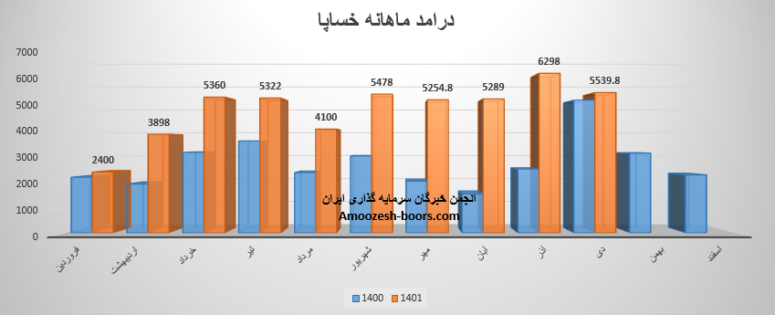 شرکت شرکت ایرانی تولید اتومبیل (سایپا) با نماد خساپا در دهمین ماه از سال مالی به درآمد 5539.8 میلیارد تومانی رسیده است .درآمد دی ماه 1401 سهم خساپا تغییرات زیر را تجربه نموده است .