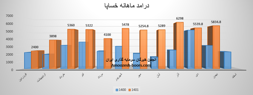 درآمد بهمن ماه نماد خساپا معادل 5824.8 میلیارد تومان گزارش شده که تغییرات زیر را تجربه نموده است؛