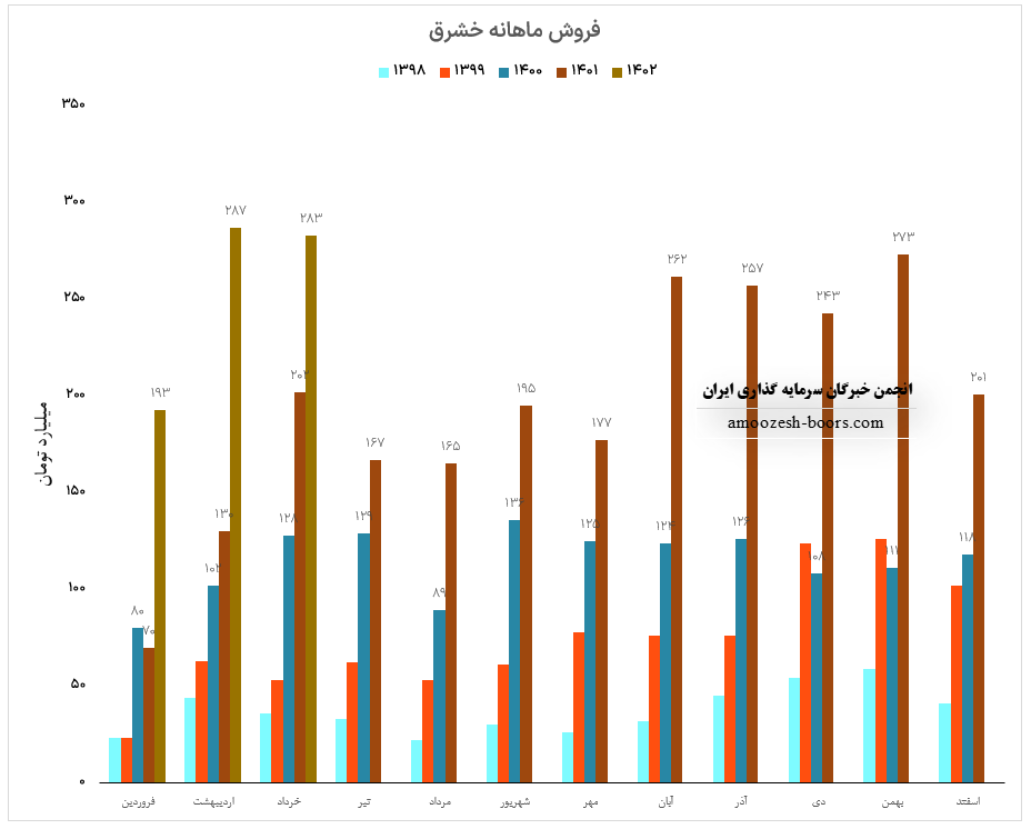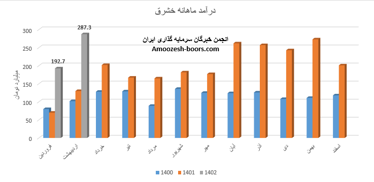 درآمد ماهانه خشرق نسبت به مدت مشابه افزایش 59 درصدی را تجربه نموده است.