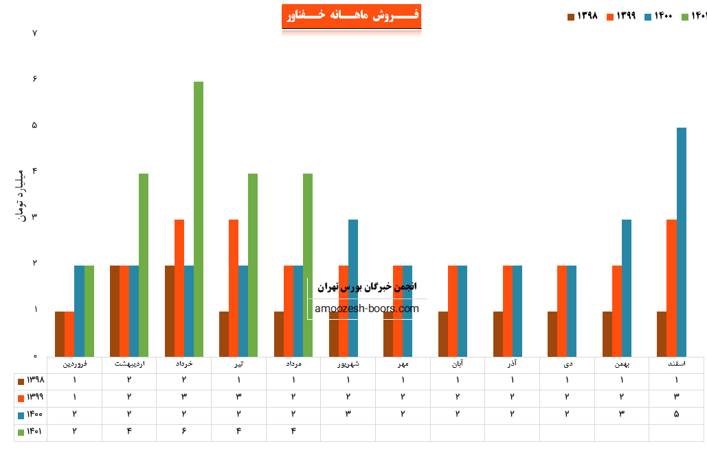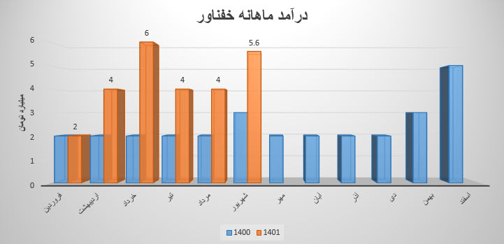 سهم خفناور نسبت به دوره 1 ماهه مشابه سال قبل 92% افزایش درآمد داشته است.