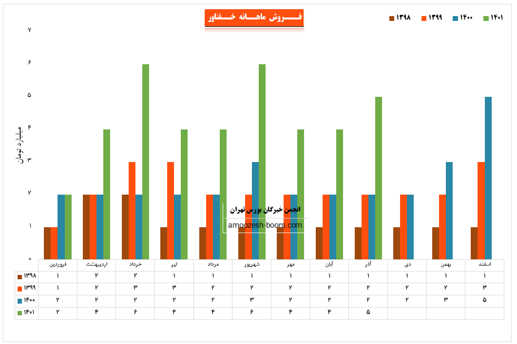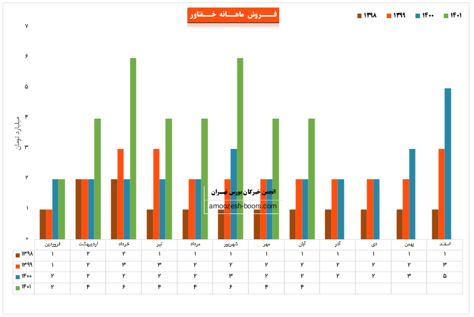 نماد خفناور که در بهمن ماه با ثبت گزارش مطلوبی به درآمد 5.8 میلیارد تومان رسید، موفق به افزایش 26 درصدی درآمد نسبت به ماه گذشته و همچنین افزایش 34 درصدی نسبت به متوسط ماهانه و 93 درصدی نسبت به مدت مشابه گردیده است، مجموف درآمد خفناور در عملکرد تجمیعی 11 ماهه رشد 110 درصدی نسبت به مدت مشابه داشته است، پر فروش ترین محصول سهم خفناور شاتون پژو با سهم 43 درصدی از فروش ماهانه گزارش شده است این در حالی است که در ماه گذشته تولید و فروشی از این محصول انجام نشده بود.