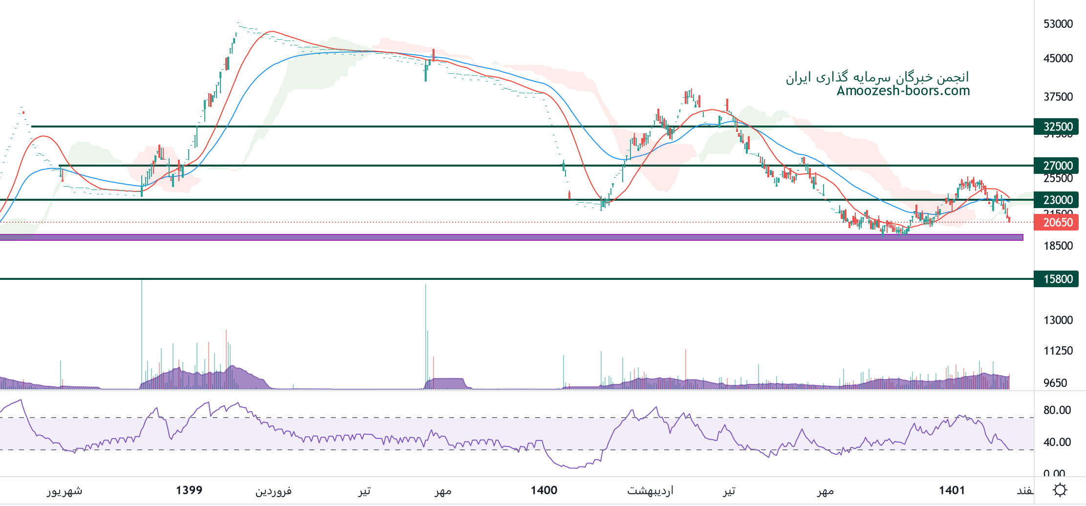 نماد خفناور حمایت 19000 ریال را پیش رو دارد، در صورت تثبیت قیمت، حرکت سهم تا 23000 ریال محتمل خواهد بود، همچنین در صورت از دست رفتن این محدوده حمایتی، حمایت بعدی 15800 ریال در نظر گرفته خواهد شد.