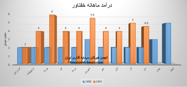 سهم خفناور (شرکت مهندسی و صنعتی روان فن آور) در آبان ماه ۱۴۰1 حدود مبلغ 4 میلیارد تومان درآمد داشته که این میزان در مقایسه با ماه گذشته بدون تغییر و همچنین در مقایسه با مدت مشابه سال گذشته 100% رشد درآمد پیدا کرده است.