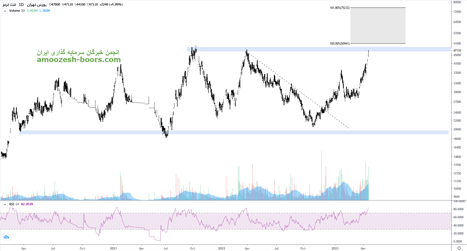 قیمت سهم خلنت به مقاومت مهم سقف تاریخی 5000 تومان رسیده است در صورت توانایی قیمت نسبت به عبور از این ناحیه، مقاومت بعدی سهم خلنت ناحیه ۷۵۰۰ تومان تعیین شده است. همچنین در صورت تمایل قیمت اصلاح حمایت مینور ناحیه ۳۷۰۰ تومان اولین حمایت سهم خلنت تعیین شده است.