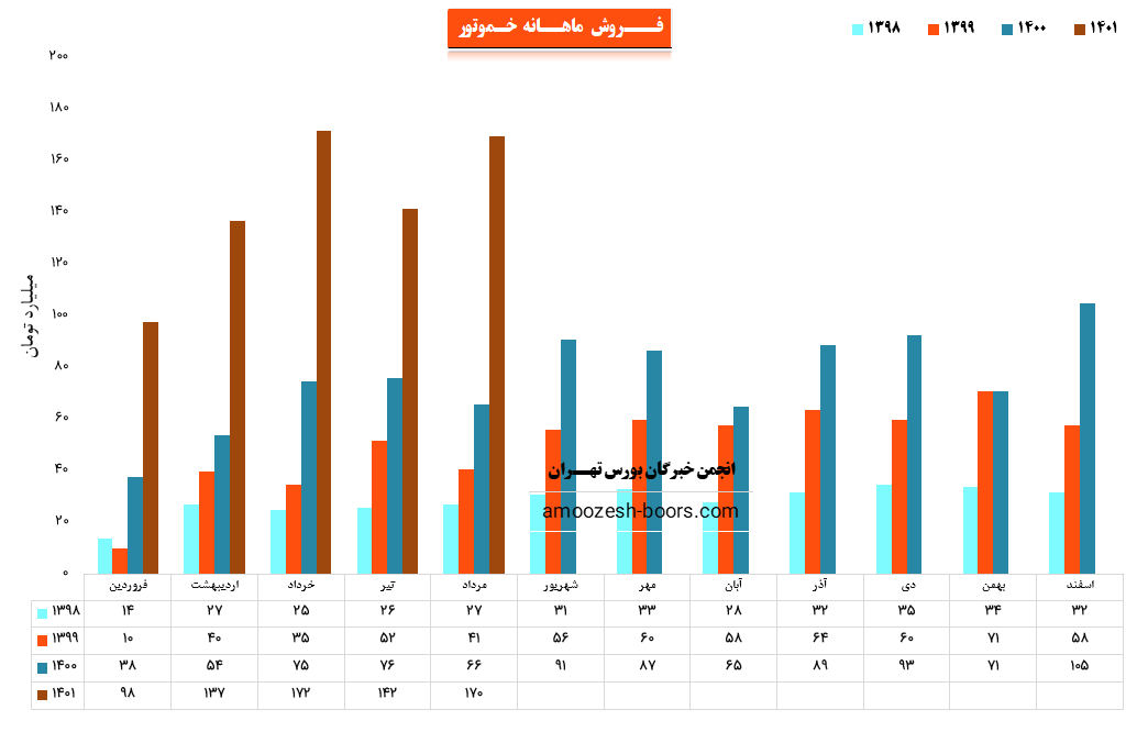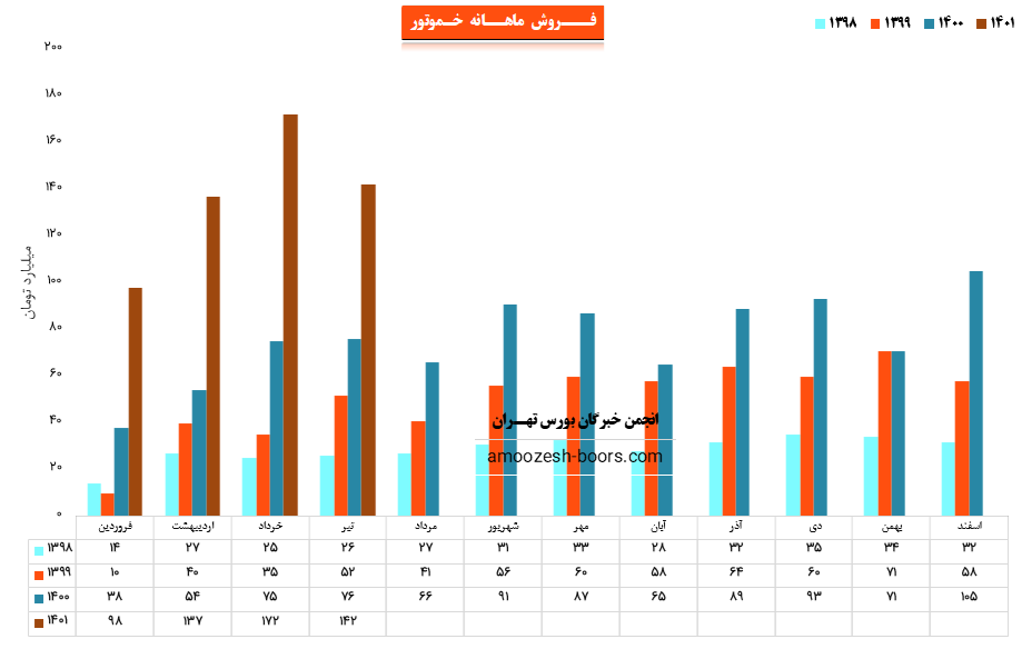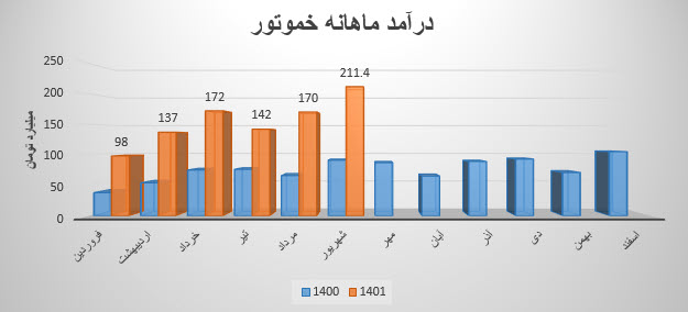 سهم خموتور (شركت موتورسازان تراكتورسازي ايران) در دوره یک ماهه منتهی به 31 شهریور ماه 1401، مبلغ 211.4 میلیارد تومان درآمد داشته که نسبت به ماه قبل 25% افزایش و نسبت به میانگین ماه های قبل 47% افزایش داشته است.
