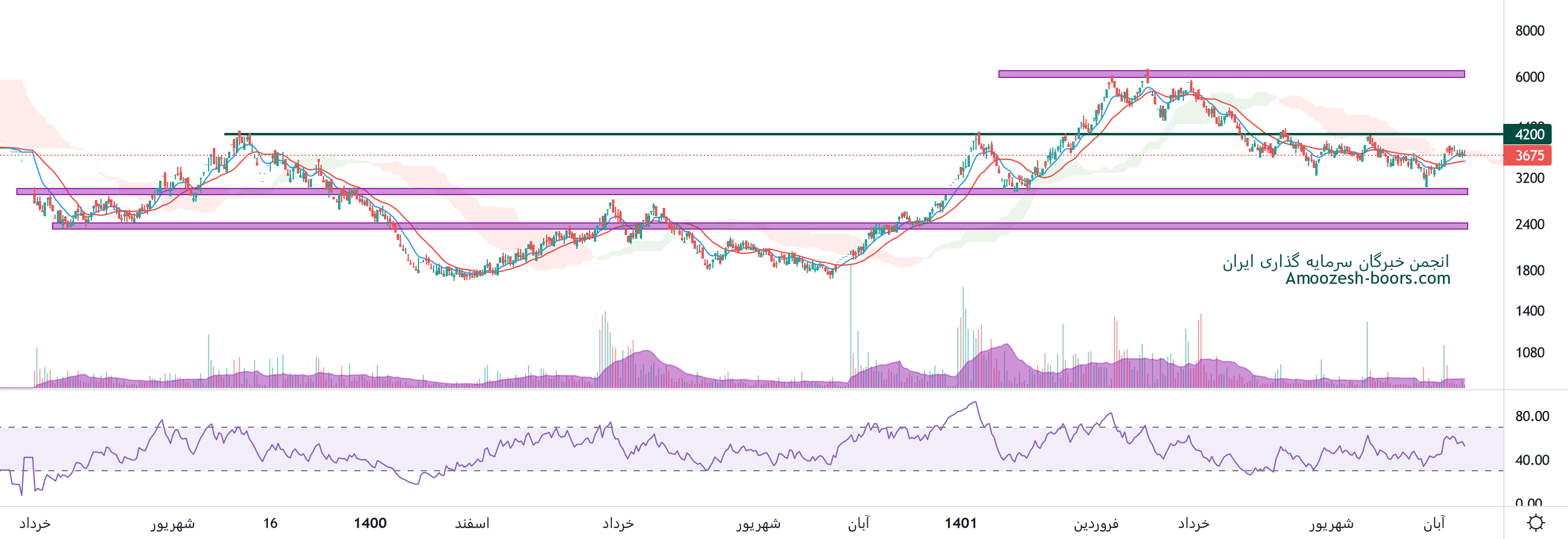 قیمت سهم خموتور بر روی حمایت ناحیه 360 تومان قرار گرفته است. لذا در صورت ایجاد تقاضا در کلیت بازار، مقاومت های سهم خموتور به ترتیب 420 و 590 تومان در نظر گرفته خواهد شد. همچنین در صورت عدم ایجاد تقاضا و از دست رفتن حمایت ناحیه 360 تومان، حمایت بعدی سهم خموتور ناحیه 290 تومان در نظر گرفته خواهد شد.