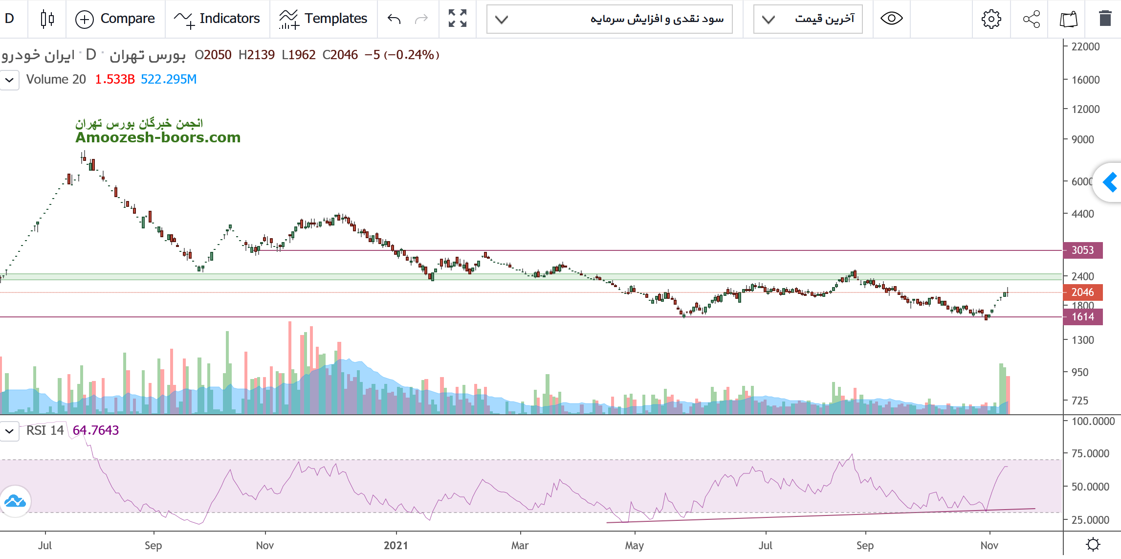 خودرو بعد از اصلاح قیمتی 80 درصدی در حال حاضر با ایجاد واگرایی مثبت در محدوده حمایت استاتیک و دره قیمتی قبلی واقع شده و مقاومت روانی عدد رند 2000 تا تارگت 2300 بر سر راه سهم قرار داشته و رعایت حد ضرر 1560 ریال برای سهامداران الزامیست .