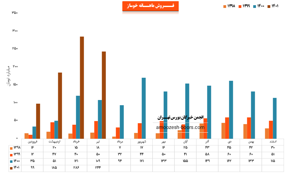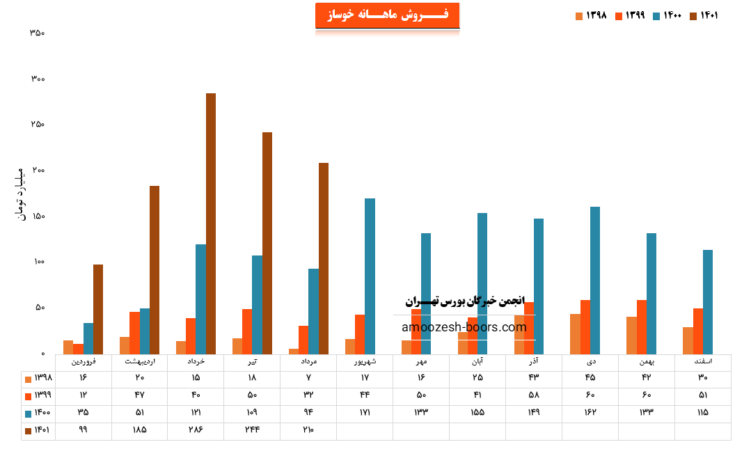 افت ادامه دار فروش ماهانه نماد خوساز در مرداد ماه 1401