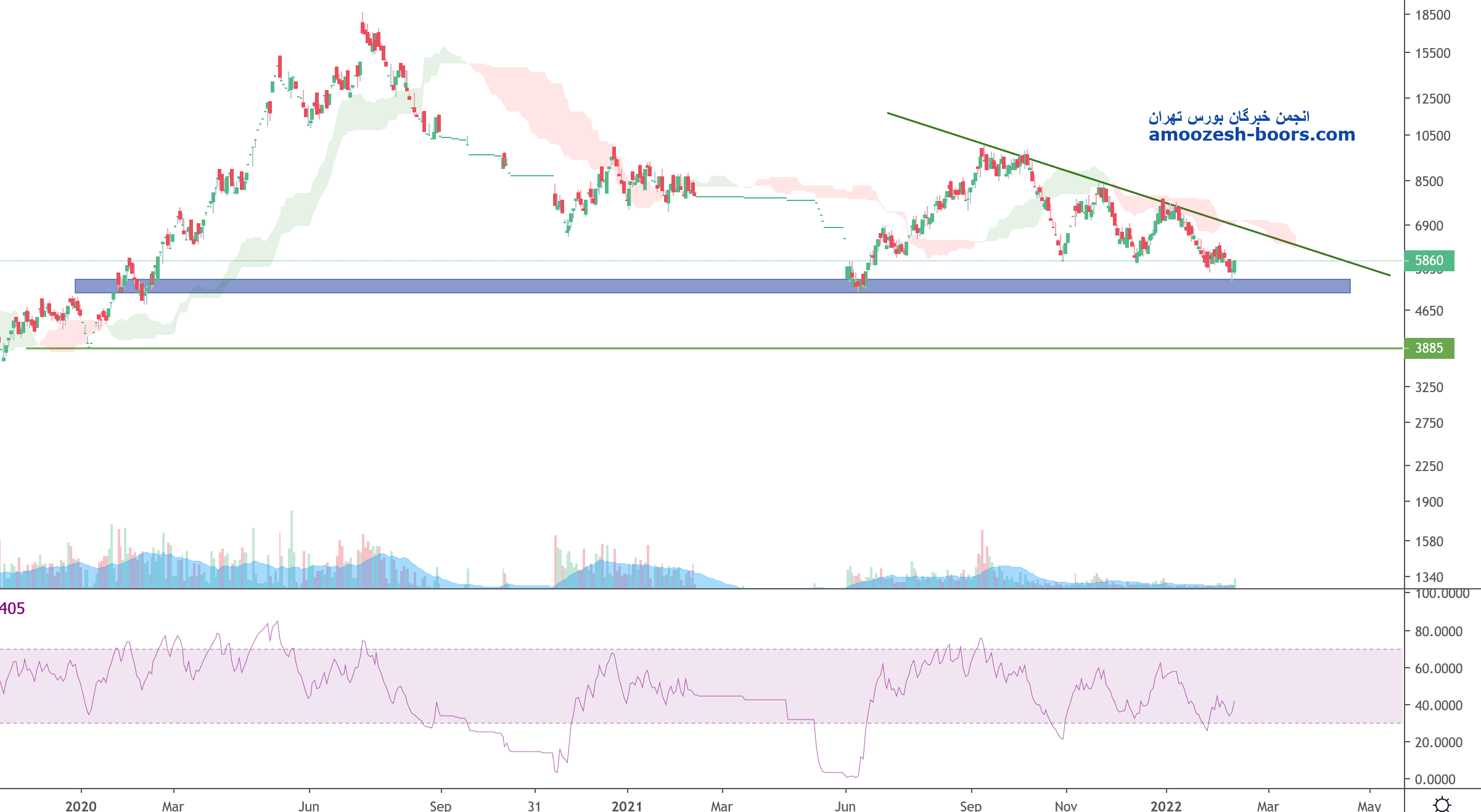 قیمت به محدوده حمایتی خود واکنش نشان داده و در صورت ادامه صعود اولین مقاومت سهم 6600 ریال در نظر گرفته شده و در صورت از بین رفتنحمایت 5000 ریال نزول سهم تا حمایت روانی عدد رند 4000 ریال محتمل خواهد بود و طبیعتا حد ضررمعامله گران را فعال مینماید .