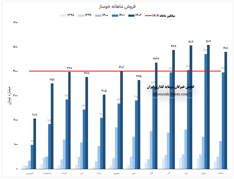 خوساز از طریق فروش داخلی میتواند 4325 میلیارد تومان درآمد عملیاتی و 4195 میلیارد تومان بهای تمام شده تا پایان سال مالی 1402 داشته باشد.