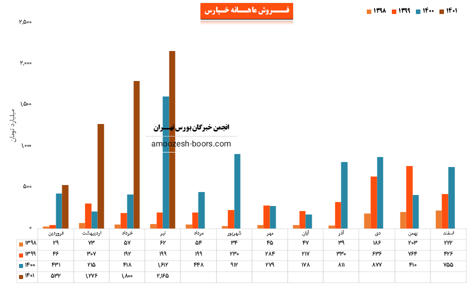 نماد خپارس (شرکت پارس خودرو) در مرداد ماه ۱۴۰1 حدود مبلغ 1737 میلیارد تومان درآمد داشته که این میزان در مقایسه با ماه گذشته 20% کاهش و همچنین در مقایسه با مدت مشابه سال گذشته 288% رشد درآمد پیدا کرده است.