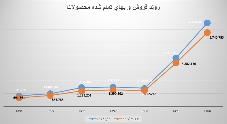 روند فروش و بهاي تمام شده محصولات در 6 سال اخير و سال جاري به شرح زیر میباشد :
