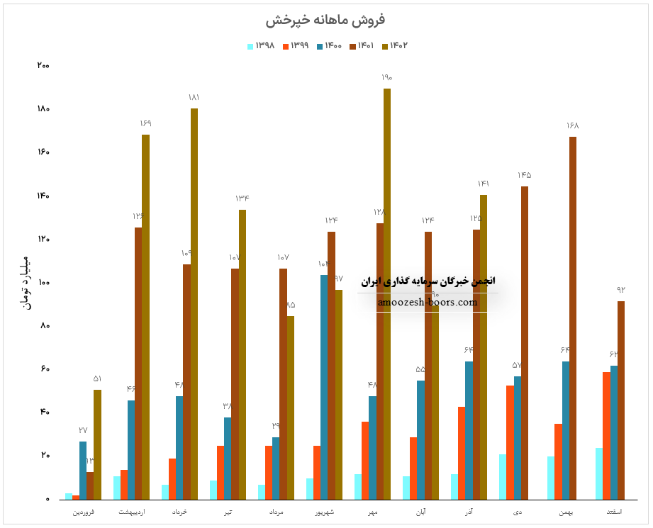 فروش خچرخش در این ماه افزایش 26% در مقایسه با ماه گذشته داشته است . همچنین در مقایسه به مدت مشابه 109% و نسبت به متوسط ماهانه47% افزایش داشته است .