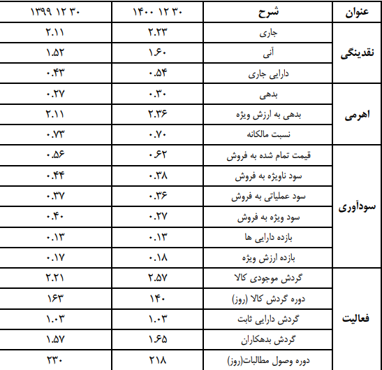 نسبت های مالی و مهم شرکت به شرح زیر میباشد :