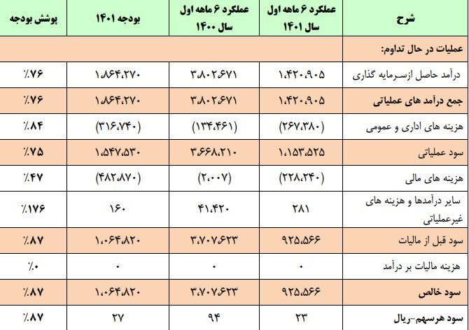EPS محقق شده نماد خگستر (شرکت گسترش سرمایه گذاری ایران خودرو) در دوره 6 ماهه معادل 23 ریال سود گزارش شده که افت 76 درصدی نسبت به مدت مشابه سال قبل داشته است . جمع درآمد عملیاتی 83 درصد افت ،سود عملیاتی 69 درصد افت ، هزینه های مالی 11272 درصد رشد و سود خالص 75 درصد کاهش را تجربه نموده است . سایر تغییرات با اهمیت به شرح جدول زیر میباشد :