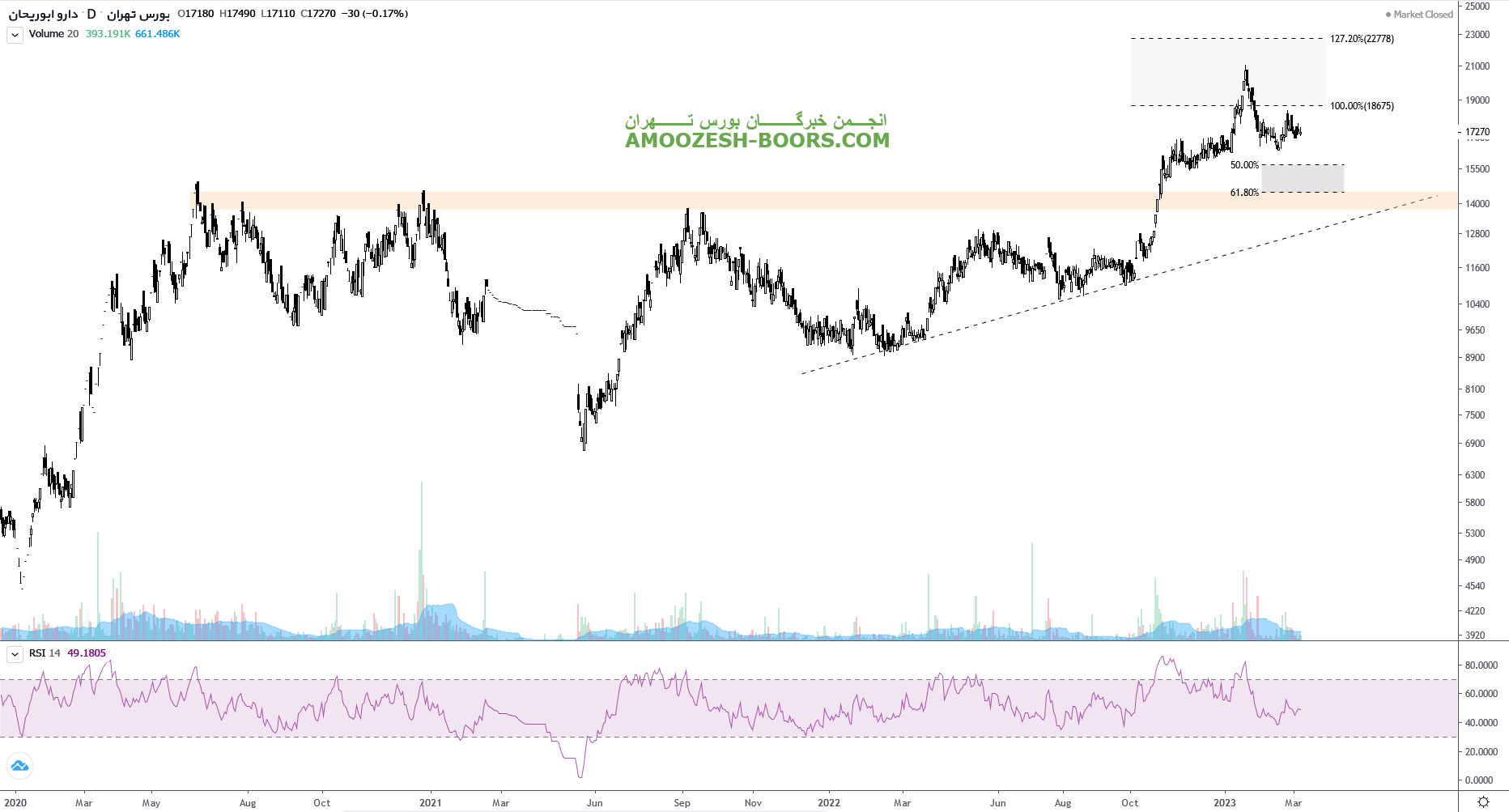 نماد دابوردر محدوده کم ریسک تکنیکالی قرار دارد، و در صورت تثبیت قیمت در این محدوده هدف محدوده 28000 ریال را دنبال میکند، همچنین در صورت از دست رفتن محدوده حمایتی 21000 ریال که وقوع این سناریو احتمال کمی دارد، اولین حمایت محدوده 17500 ریال خواهد بود.