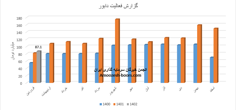 نماد دابور (شرکت دارو سازی ابوریحان) در بهمن ماه 1401 حدود مبلغ 159 میلیارد تومان درامد داشته که این میزان نسبت به ماه گذشته 29% و همچنین نسبت به مدت مشابه سال گذشته 50% رشد درامد پیدا کرده است!