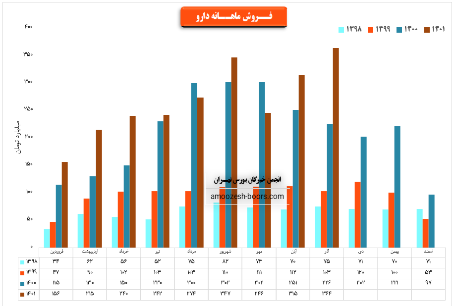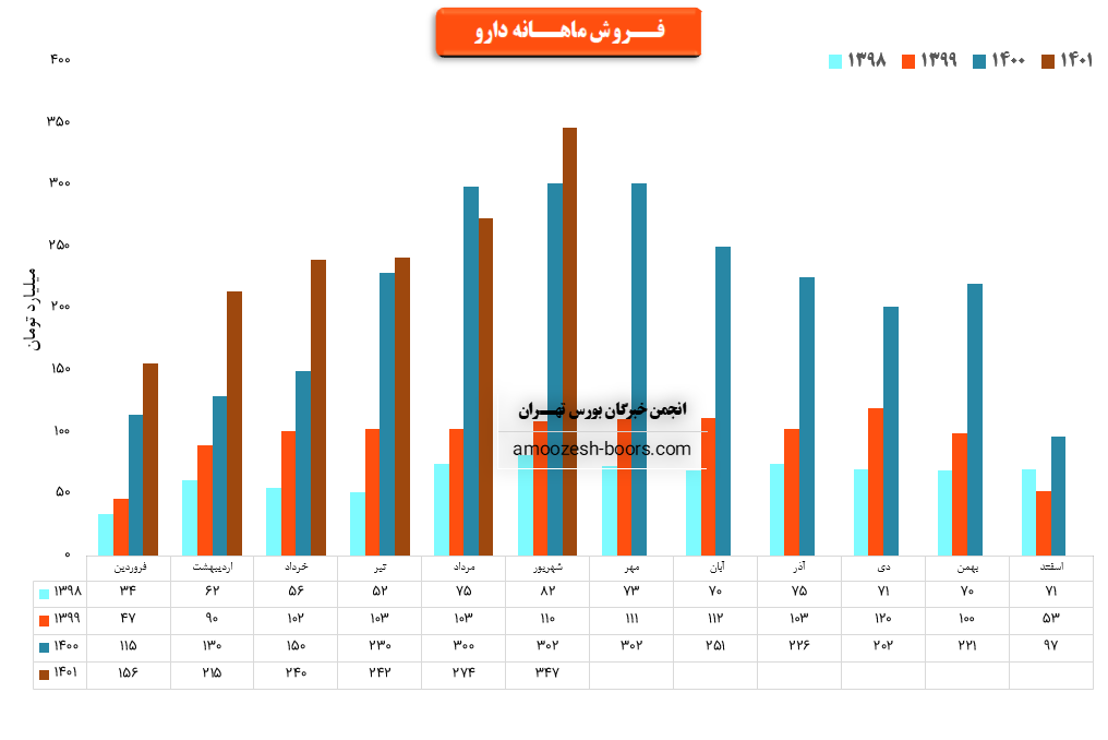 نماد دارو در شهریور ماه ۱۴۰1 حدود مبلغ 347 میلیارد تومان درآمد داشته که این میزان در مقایسه با ماه گذشته 27% و همچنین در مقایسه با مدت مشابه سال گذشته 15% رشد درآمد پیدا کرده است.