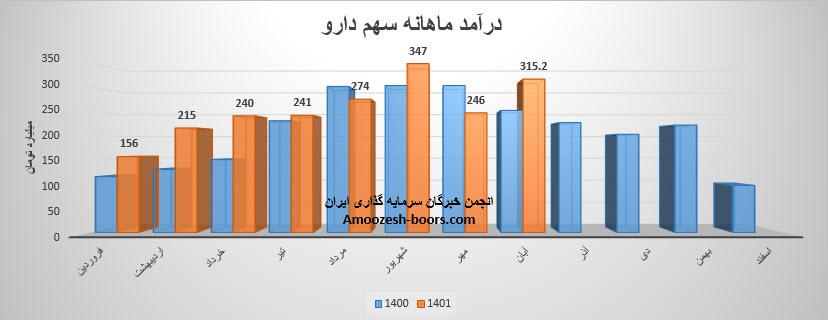 شرکت کارخانجات داروپخش (سهم دارو) در گزارش فعالیت ماهانه آبان 1401 معادل 315.2 میلیارد تومان درآمد را کسب نموده است.درآمد آبان ماه سهم دارو تغییرات زیر را داشته است :