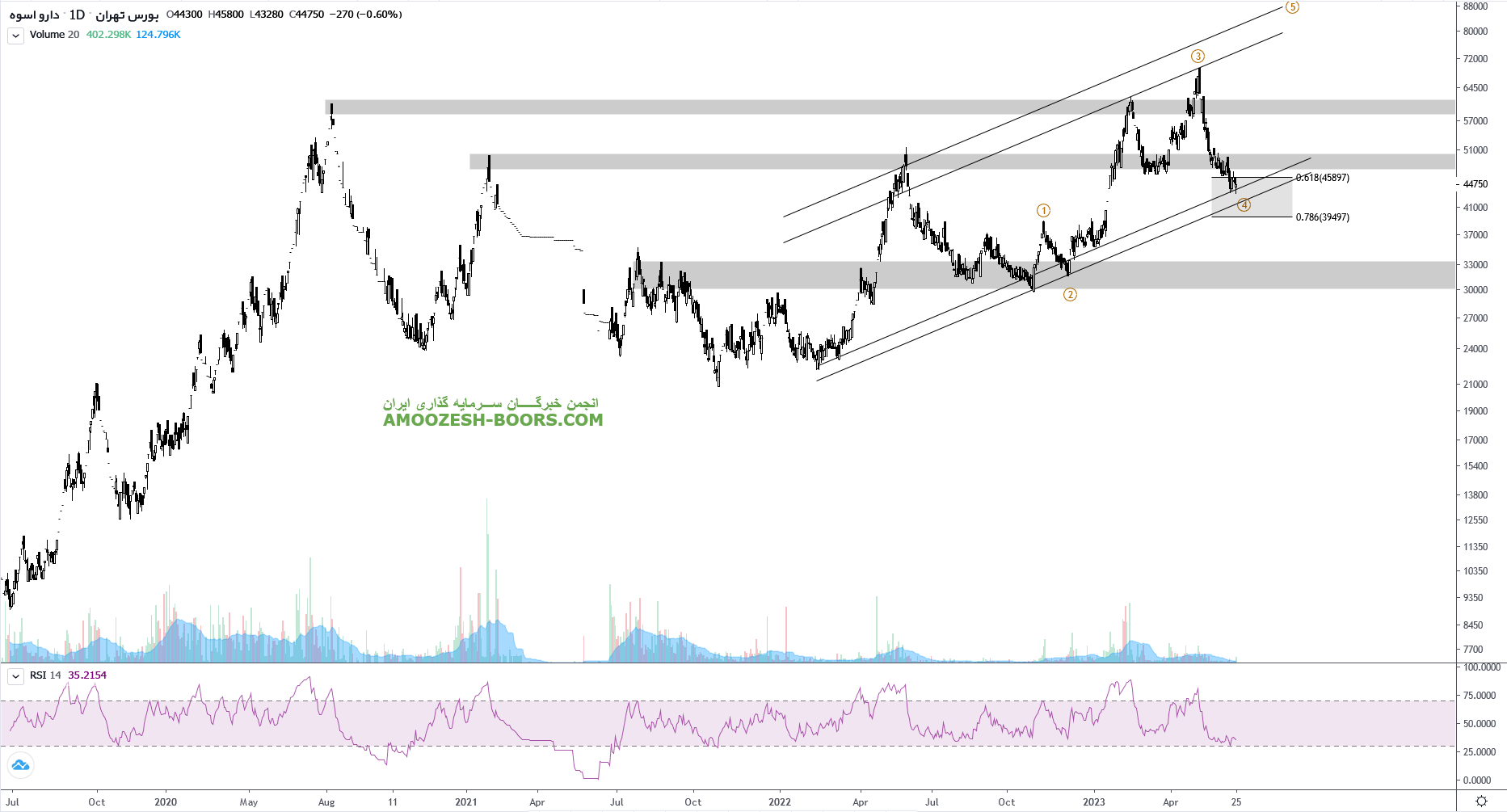 قیمت سهم داسوه بر روی حمایت ناحیه کف کانال صعودی یعنی ناحیه ۴۳۰۰ تومان قرار گرفته است در صورت حفظ این ناحیه و بروز سیگنال مثبت در کلیت بازار، حرکت سهم داسوه تا مقاومت ناحیه 6000 تومان و در صورت شکست مقاومت ناحیه ۸۰۰۰تومان ادامه خواهد داشت. همچنین در صورت از دست رفتن این ناحیه، حمایت بعدی سهم داسوه ناحیه 3100 تومان در نظر گرفته خواهد شد.