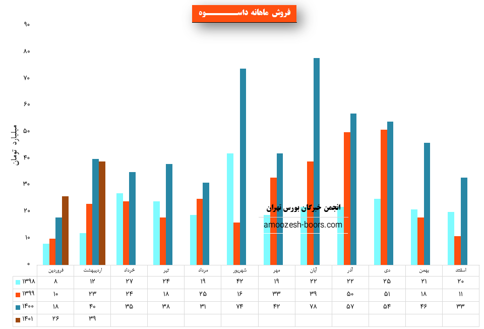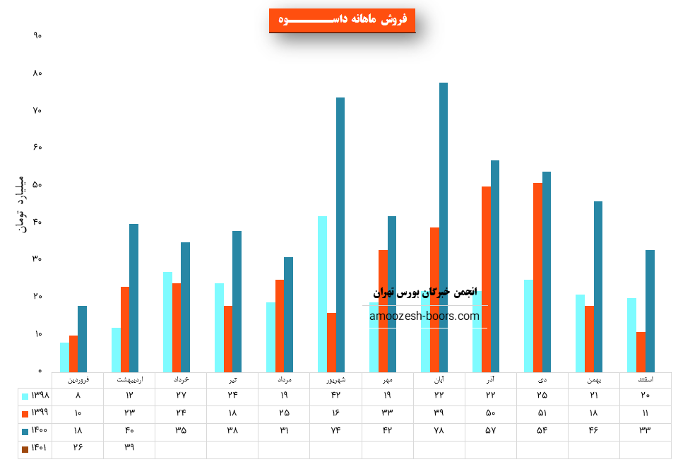 سهم داسوه در فروردین ماه حدود بیش از 22 میلیون و 700 هزار عدد از محصولات خود را به فروش رسانده که این میزان در مقایسه با حجم فروش ماه گذشته خود حدود 41% افزایش پیدا کرده است.