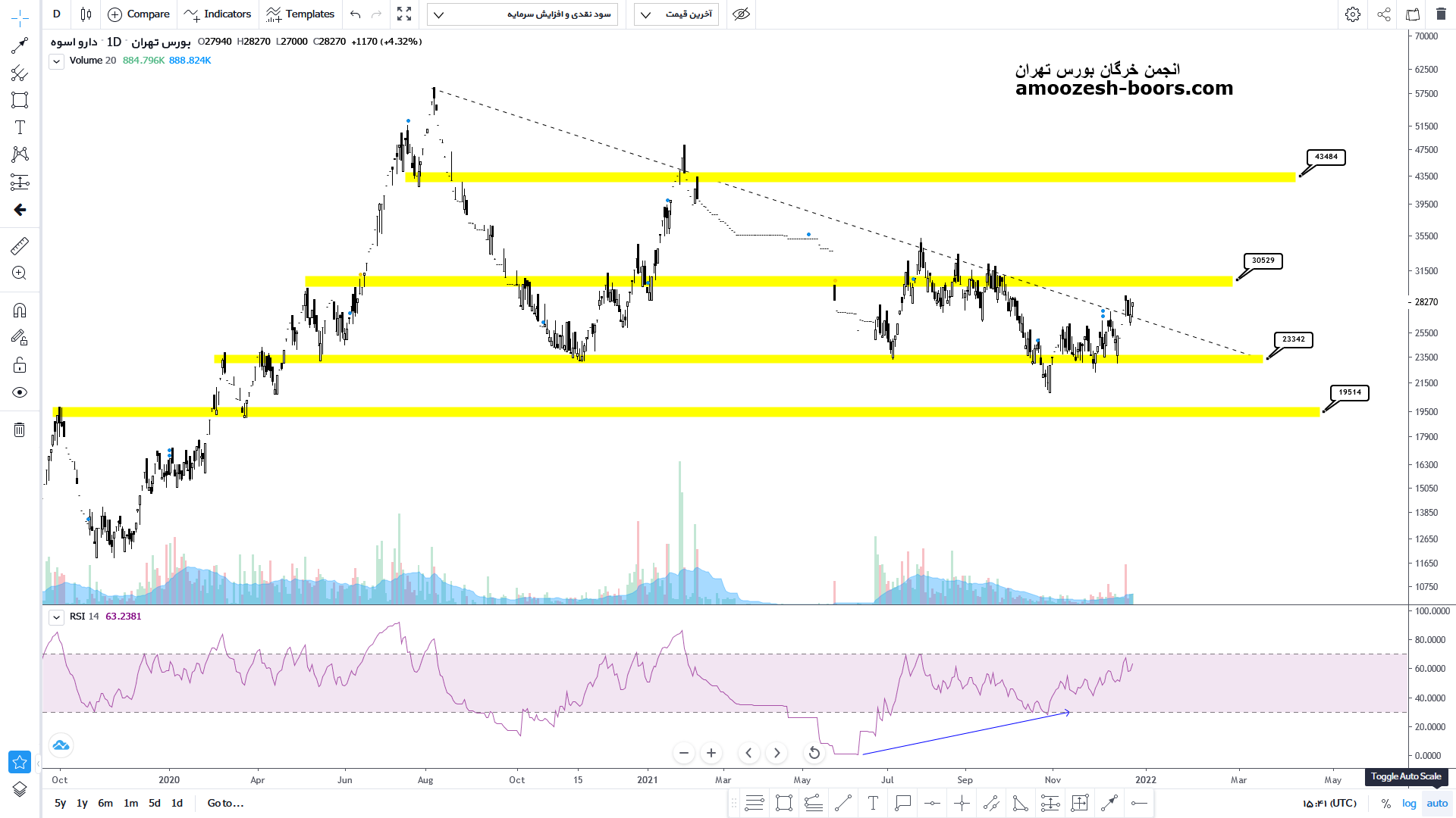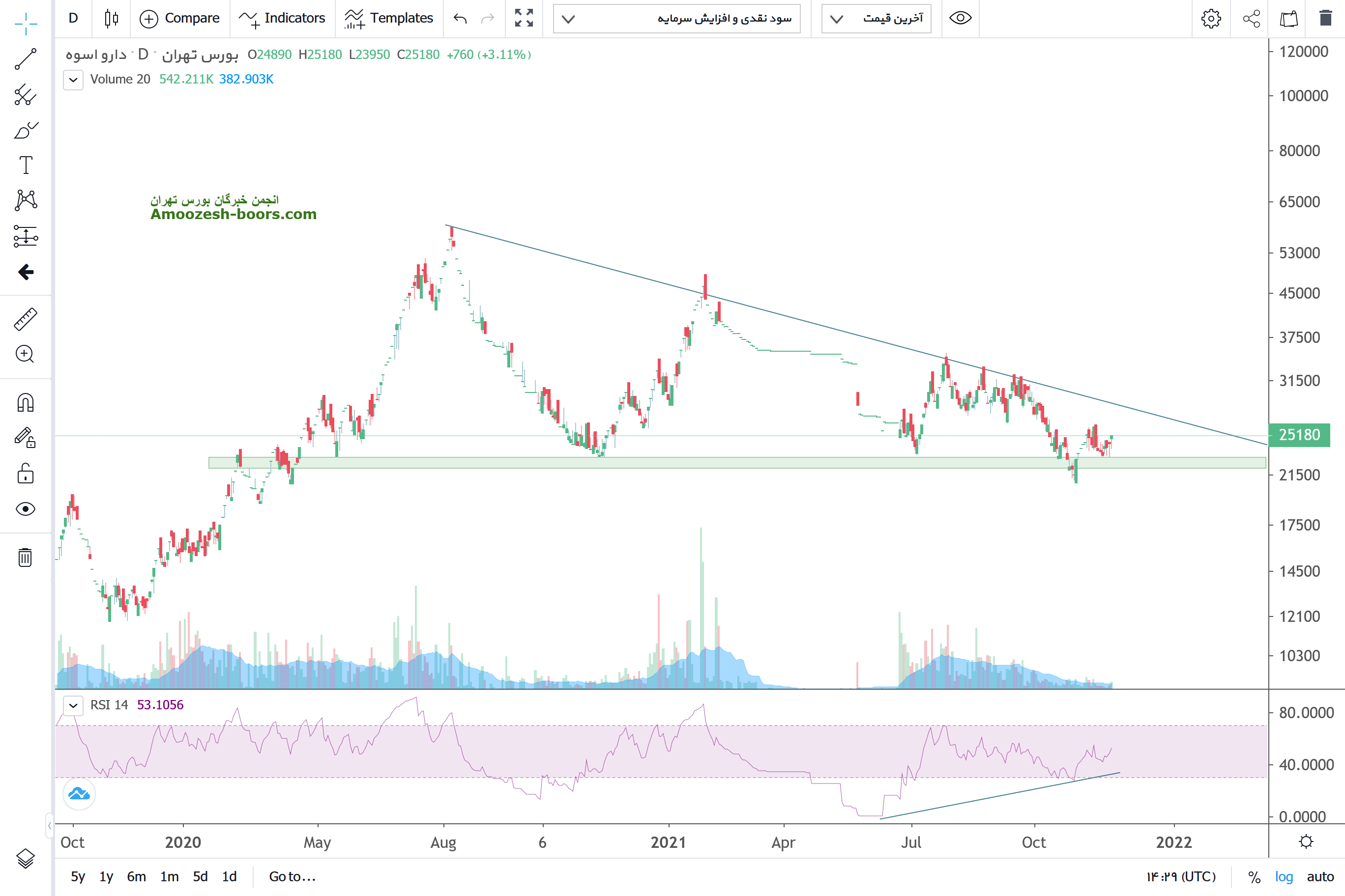 قیمت سهم داسوه پس از ایجاد واگرایی مثبت در محدوده حمایت استاتیک تثبیت گردیده است و مقاومت 28000 را سر راه خود را دارد.