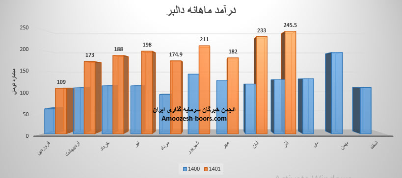 مجموع درآمد سهم دالبر طی عملکرد 9 ماهه نسبت به مدت مشابه سال قبل 69% رشد داشته است.