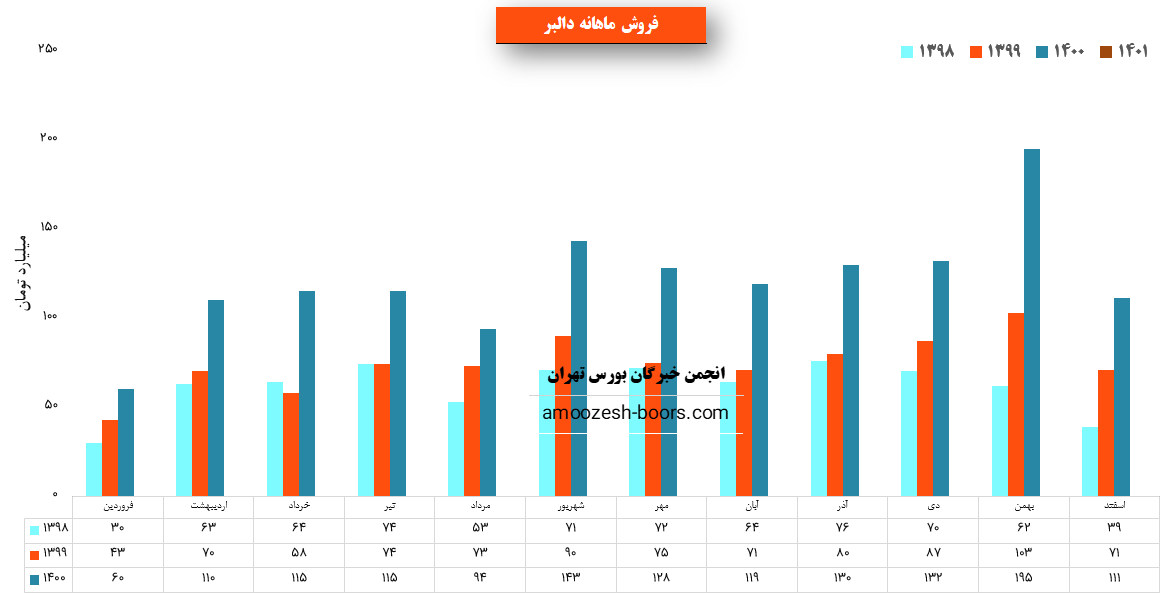 لازم به ذکر است که سهم دالبر در اردیبهشت ماه تنها مبلغ 6 میلیارد تومان فروش صادراتی داشته است.