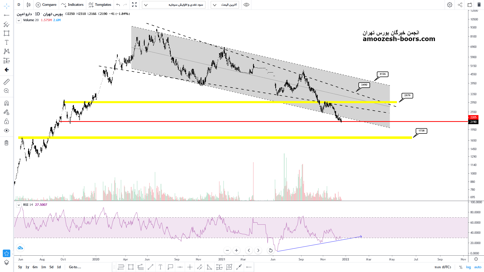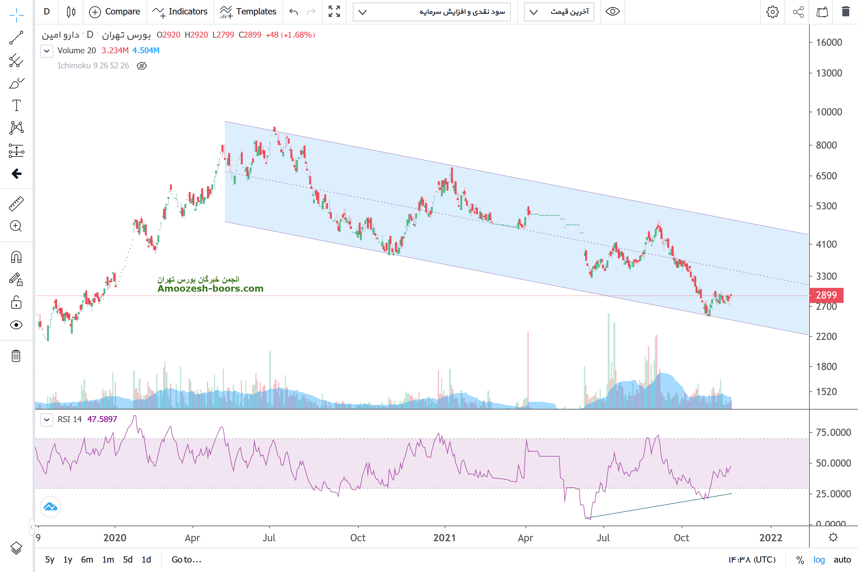 قیمت سهم دامین پس از تست کف کانال با ایجاد واگرایی مثبت به اصلاح خود پایان داده و مقاومت های 3000 و 3300 و 3700 و 4000 را تا سقف کانال بر سر راه خود دارد . محدوده 490 تومان مقاومت مهمی برای دامین است که در صورت عبور سیگنال مثبتی برای ادامه رشد سهم منتشر خواهد شد.