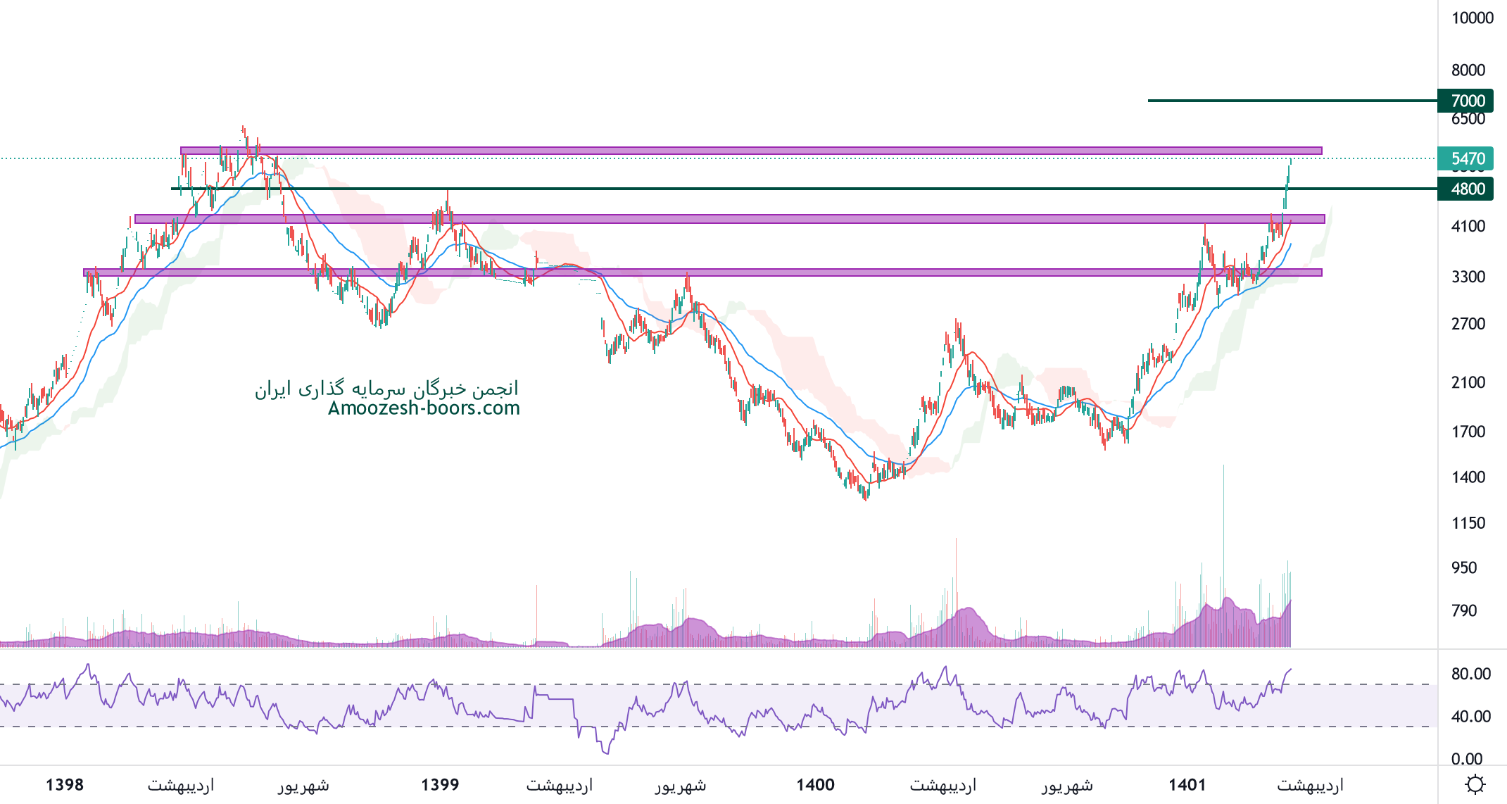 نماد دامین به محدوده مقاومتی 6000 ریال رسیده، در صورت ادامه دار بودن روند صعودی و عبور قیمت از این محدوده، مقاومت بعدی سهم دامین 7000 ریال در نظر گرفته خواهد شد، همچنین در صورت ورود سهم به فاز اصلاحی اولین حمایت سهم 4800 ریال خواهد بود.
