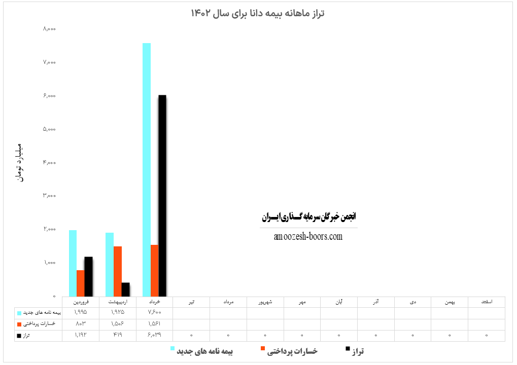 تراز تجمیعی بیمه دانا از ابتدای سال 142% ارزیابی میشود.