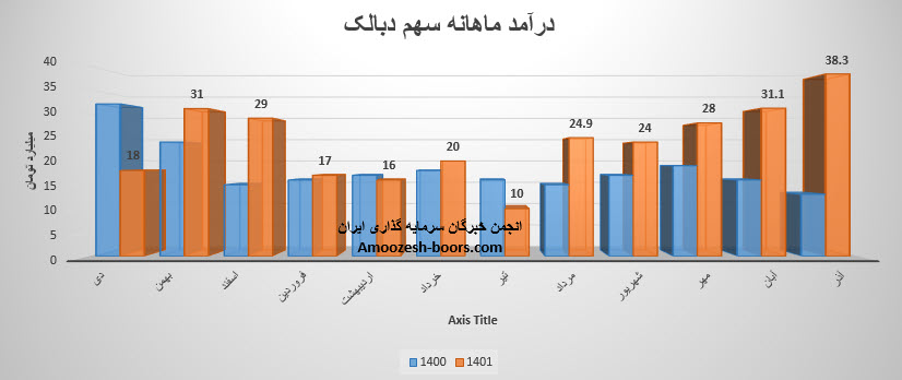 سهم دبالک (شرکت تولید مواد اولیه دارویی البرز سازه) در دی ماه 1401 حدود مبلغ 55 میلیارد تومان درآمد داشته که این میزان در مقایسه با ماه گذشته 45% و همچنین در مقایسه با درآمد در مدت مشابه سال گذشته خود 206% رشد پیدا کرده است.