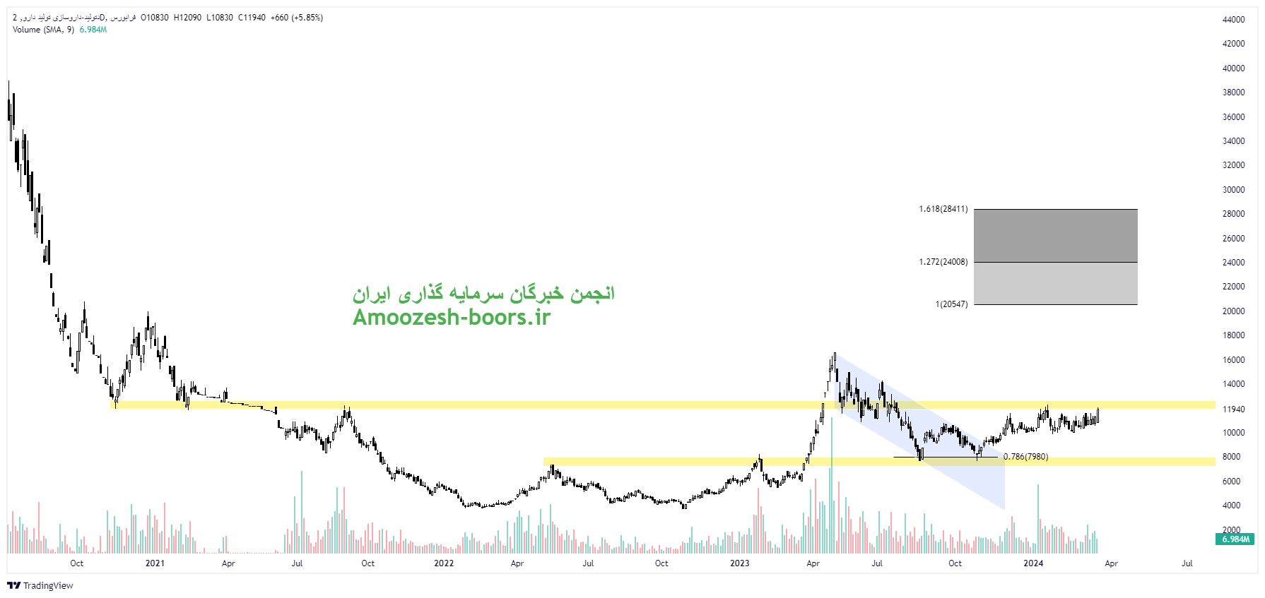 حمایت دتولید 3600 ریال: این سطح بهعنوان یک نقطه حیاتی برای جلوگیری از اصلاح بیشتر قیمت عمل میکند، اگر قیمت به زیر این سطح نفوذ کند، انتظار میرود که حمایت بعدی در محدوده 3000 ریال قرار داشته باشد.