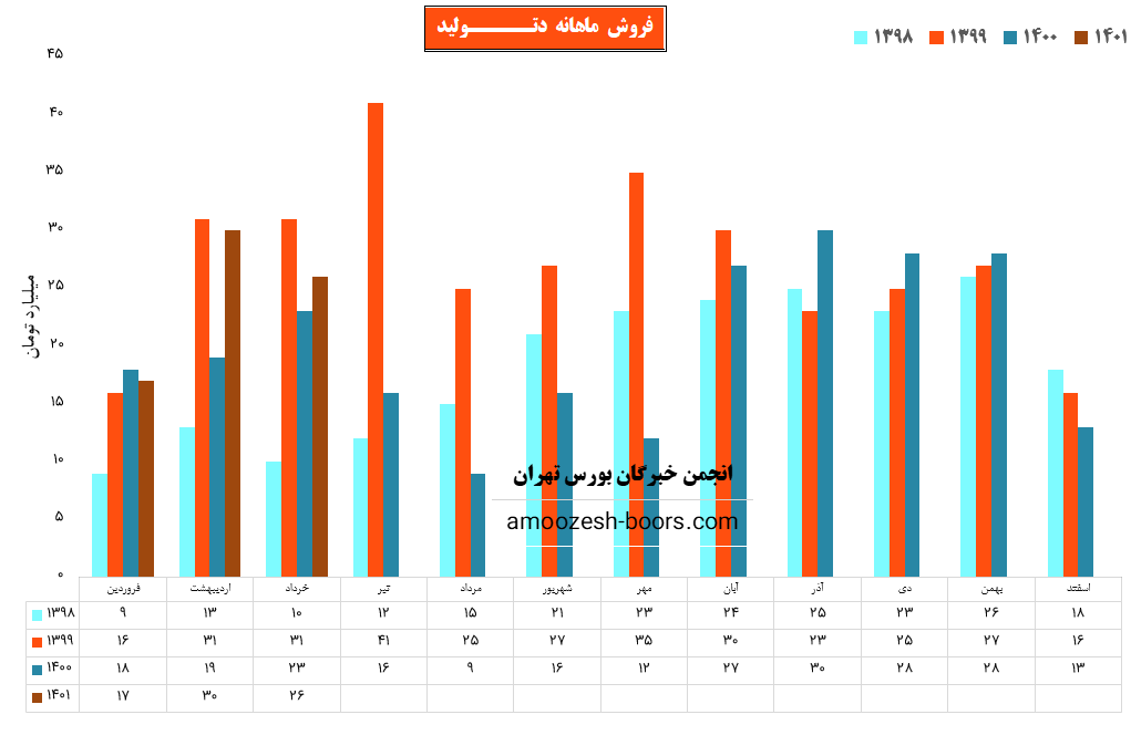نماد دتولید در تیر ماه سال ۱۴۰۱ حدود مبلغ 30 میلیارد تومان درآمد داشته که این میزان در مقایسه با ماه گذشته 15% افزایش و همچنین در مقایسه با مدت مشابه سال گذشته 88% رشد درآمد را تجربه کرده است.