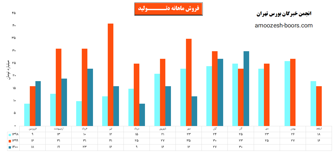 فروش نماد دتولید: 168 میلیارد تومان که نسبت به دوره مشابه گذشتــه 34% کاهش یافته است.