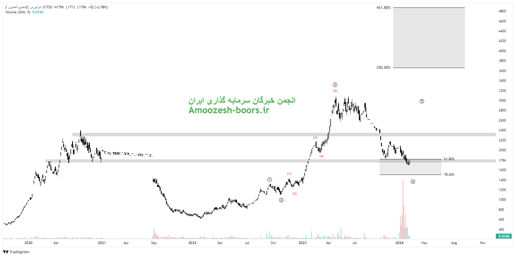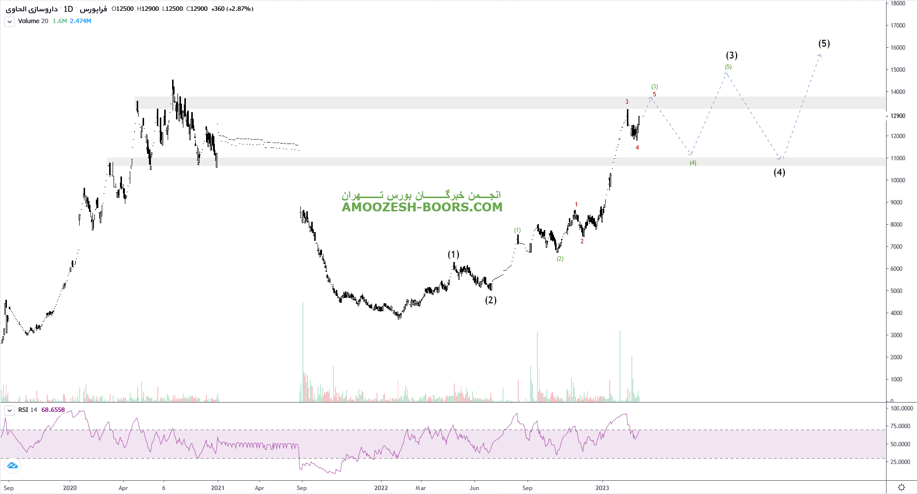 همانطور که در تحلیل گذشته این سهم دحاوی بیان شد موج اصلاحی سهم تا محدوده حمایتی ۱۸۰۰ ریال تشکیل و لذا در صورت ایجاد تقاضا در کلیت بازار مقاومت مهم ناحیه ۲۳۰۰ ریال را پیش روی خود دارد که در صورت عبور از این ناحیه، مقاومتهای مهم بعدی سهم دحاوی نواحی ۳۶۰۰ ریال و ۴۹۰۰ ریال در میان مدت در نظر گرفته خواهد شد. همچنین در صورت از دست رفتن حمایت ناحیه ۱۸۰۰ ریال مهمترین حمایت سهم دحاوی ناحیه ۱۵۰۰ ریال در نظر گرفته خواهد شد.