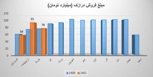 سهم درازک در خرداد ماه معادل 787 میلیارد ریال محقق نموده است که نسبت به ماه قبل 17% کاهش و نسبت به میانگین ماه های قبل 3% افزایش داشته است.